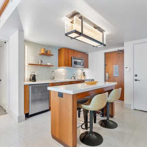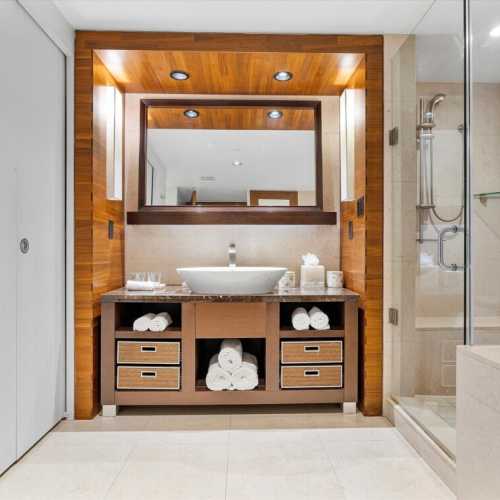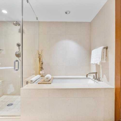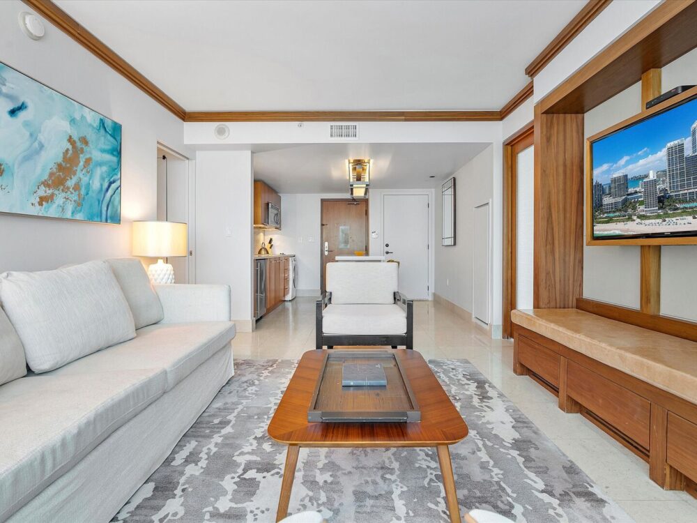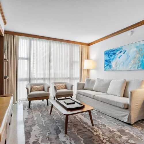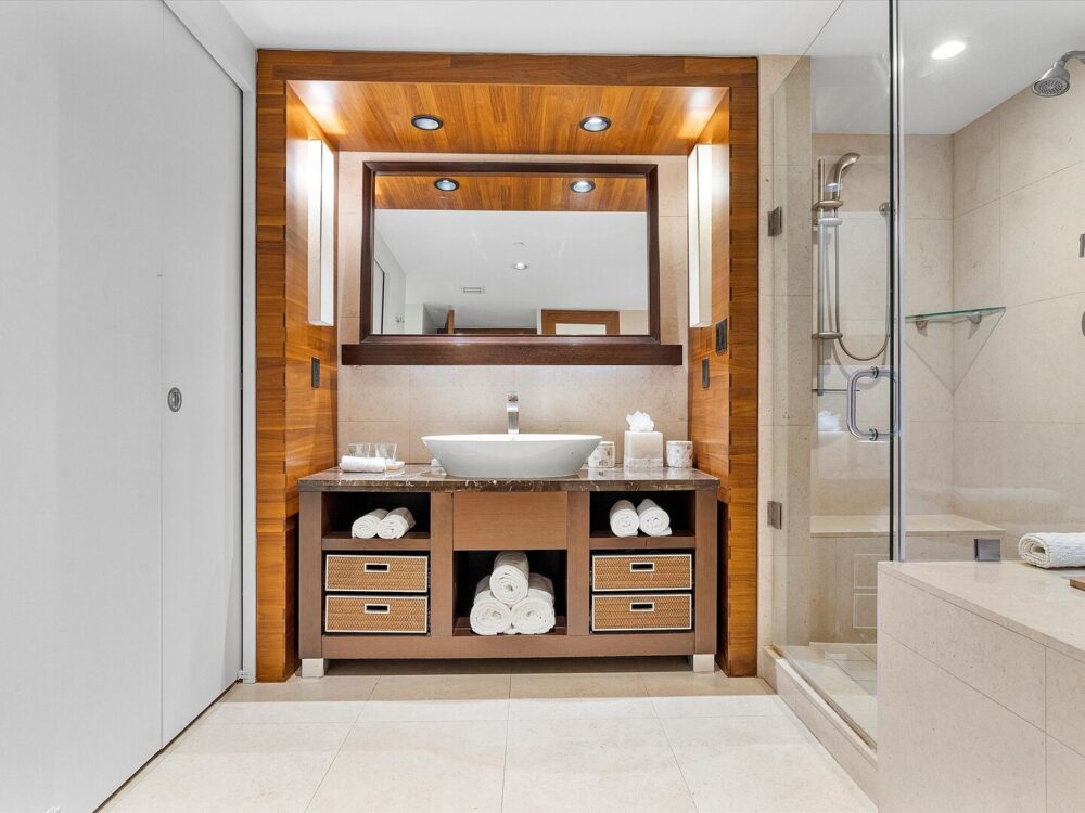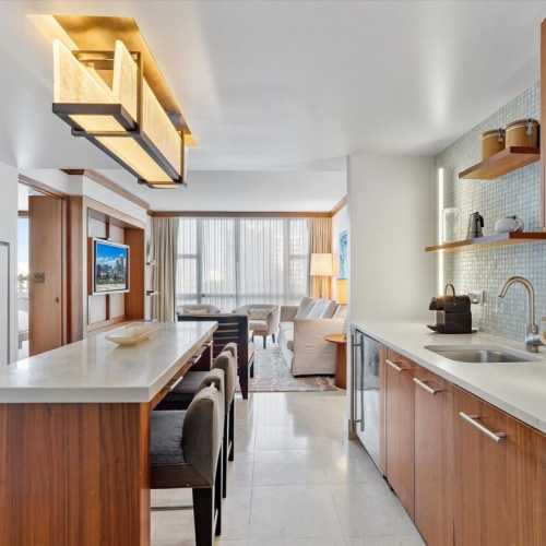 With calming colors, natural textures, and thoughtful finishes throughout, this residence sets the tone for a restorative Miami Beach escape.