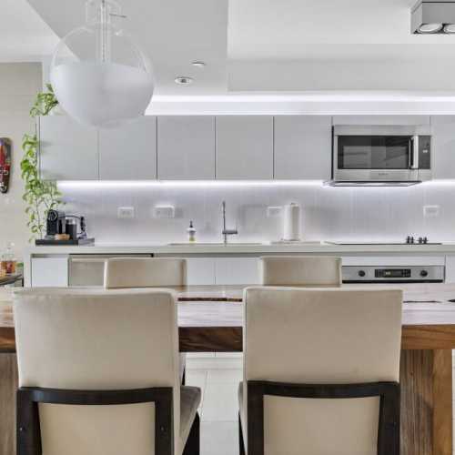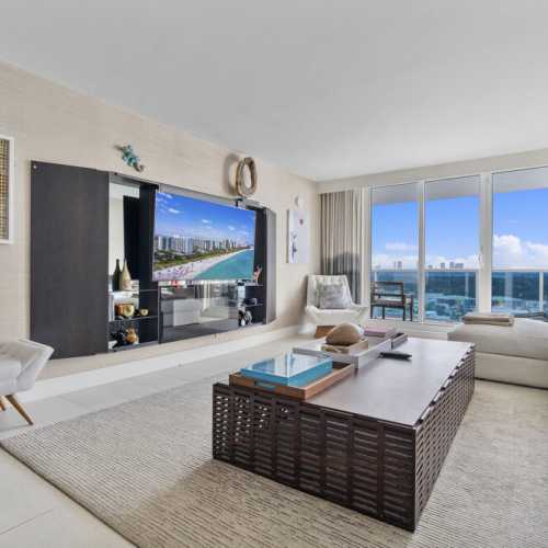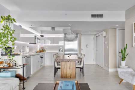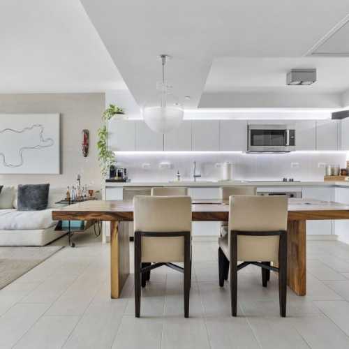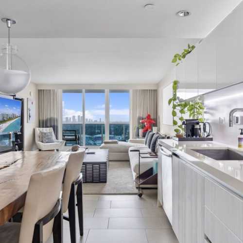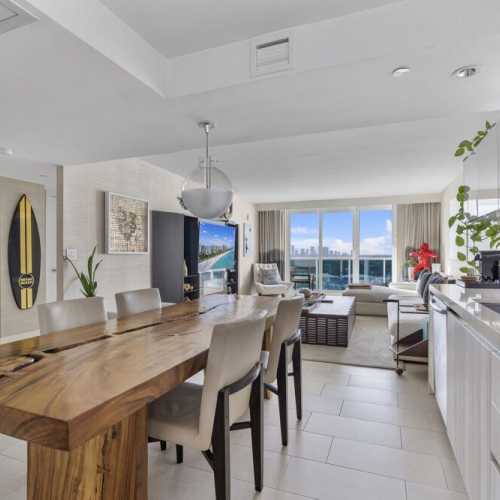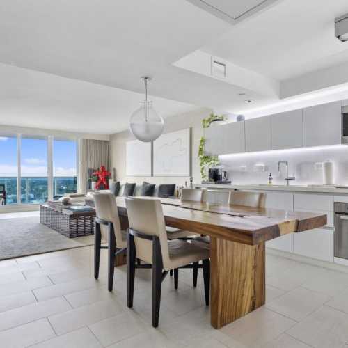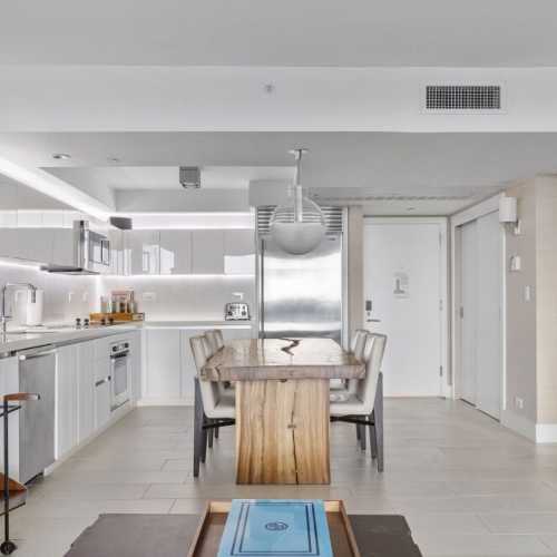Step inside this 1,057 Sq. Ft. 1 bedroom private residence located at 1 Hotel & Homes in South Beach. Enjoy a fully furnished private balcony with a double chaise lounge and a table set for two overlooking the Miami Skyline. Master bedroom has a king bed, and a nine foot long maple writing desk. Living room has plush white organic sofa. Master bedroom has an organic king-sized Keetsa mattress covered in 100% organic cotton sheets.