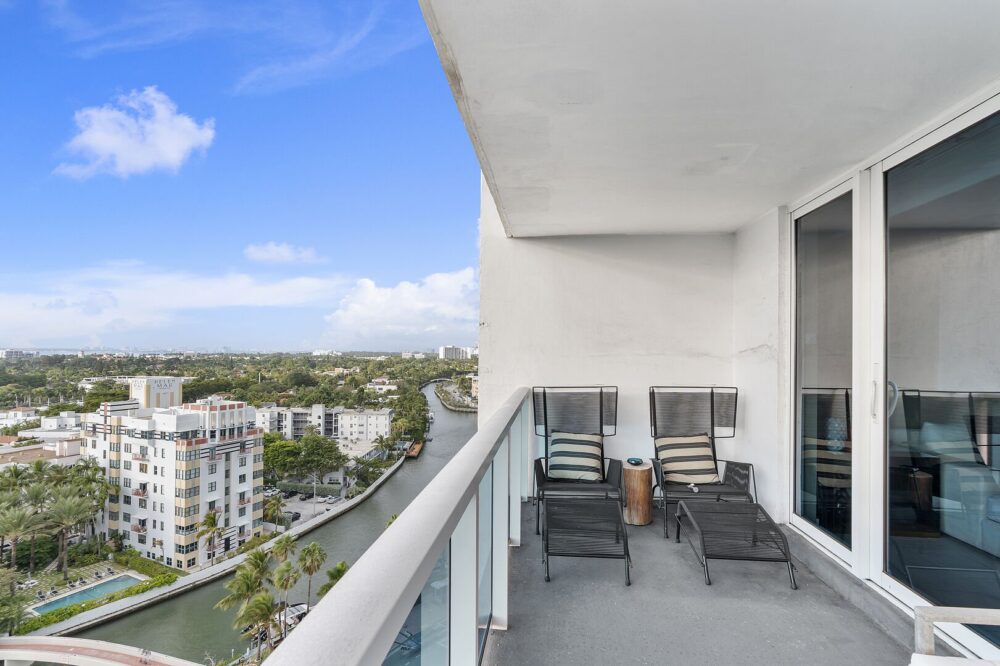 Step outside to your fully furnished private balcony, complete with a double chaise lounge and table for two, where you can enjoy peaceful mornings or sunset cocktails overlooking the Miami skyline and Intracoastal Waterway.